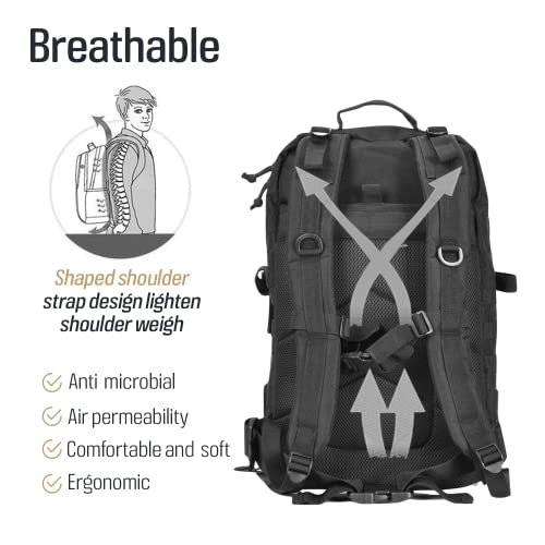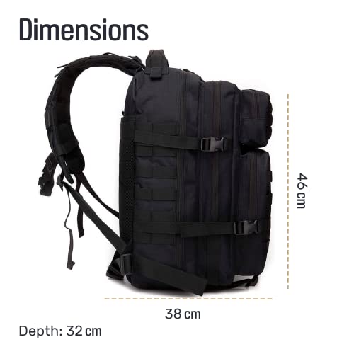 EDIFIT Mochila Crossfit 45L Militar Táctica para Gimnasio, Senderismo, Camping o Supervivencia, Unisex, Resistente, con Múltiples Bolsillos (Toda Negra)