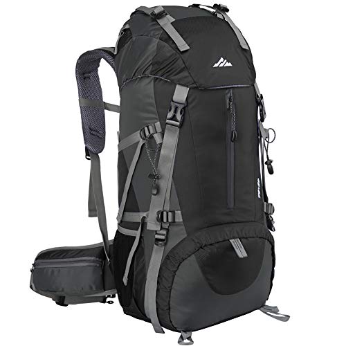 Lukasa Mochila de Senderismo 50L con Cubierta Impermeable, Mochila Trekking al Aire Libre, Bolsa para Caminatas Adecuada para Caminatas, Acampadas, Deportes al Aire Libre (Negro)