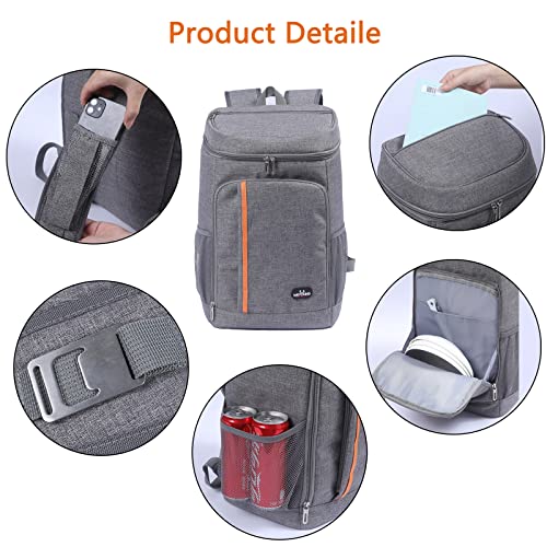 【Bolsillo multifuncional】La mochila con aislamiento de hielo tiene una gran abertura para facilitar la carga y descarga. Bolsillos laterales de malla para botella de agua y paraguas. La tapa de la bolsa tiene un espacio separado a prueba de agua de 4L para refrigerios; hay dos bolsillos frontales para utensilios y llaves, una tableta y más. Bolsillo de red con correa para el hombro para teléfono celular. Diseño de múltiples bolsillos para una fácil clasificación y gestión de artículos.