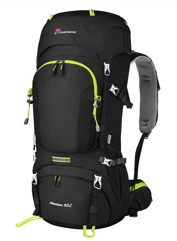 - ▶ Mochila de Senderismo MOUNTAINTOP 60L de entre 50 y 60 litros es útil para senderismo al aire libre, escalada, trekking y acampada. Está fabricada en tela nylon, muy impermeable y resistente. Dimensiones: 32 x 23 x 74 cm. Peso: 1.95KG.