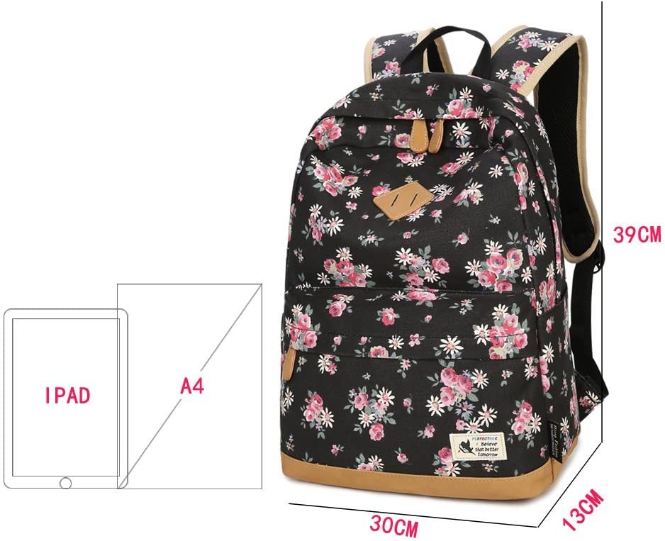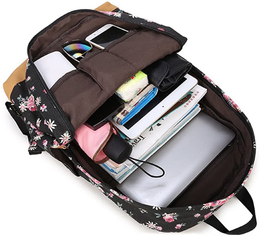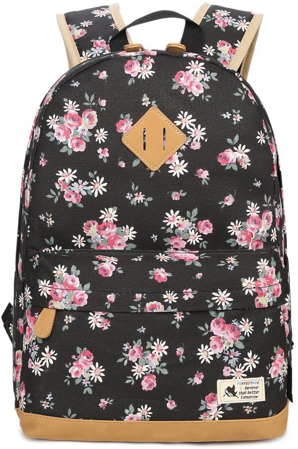 - Su tejido es floral con hojas de camomila y fondo negro, es una Mochila Bonita, llamativa y de moda para una chica como tú.
