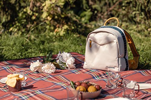 DISEÑO FUNCIONAL: Mochila isotérmica con abertura ancha; bolsillos laterales no aislados para pertenencias pequeñas, como el móvil; correa ajustable para colgarla en los hombros y asa