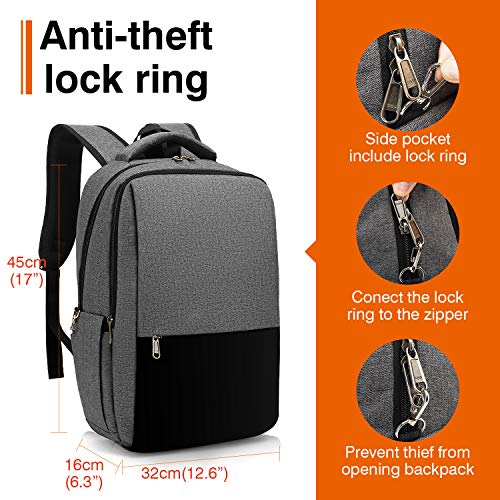 Seguridad: Nuestra mochila para portátil dispone de doble cremallera con anilla de cierre antirrobo y costuras reforzadas. También para guardar de forma segura artículos importantes y evitar que los ladrones abran tu mochila cuando viajas.