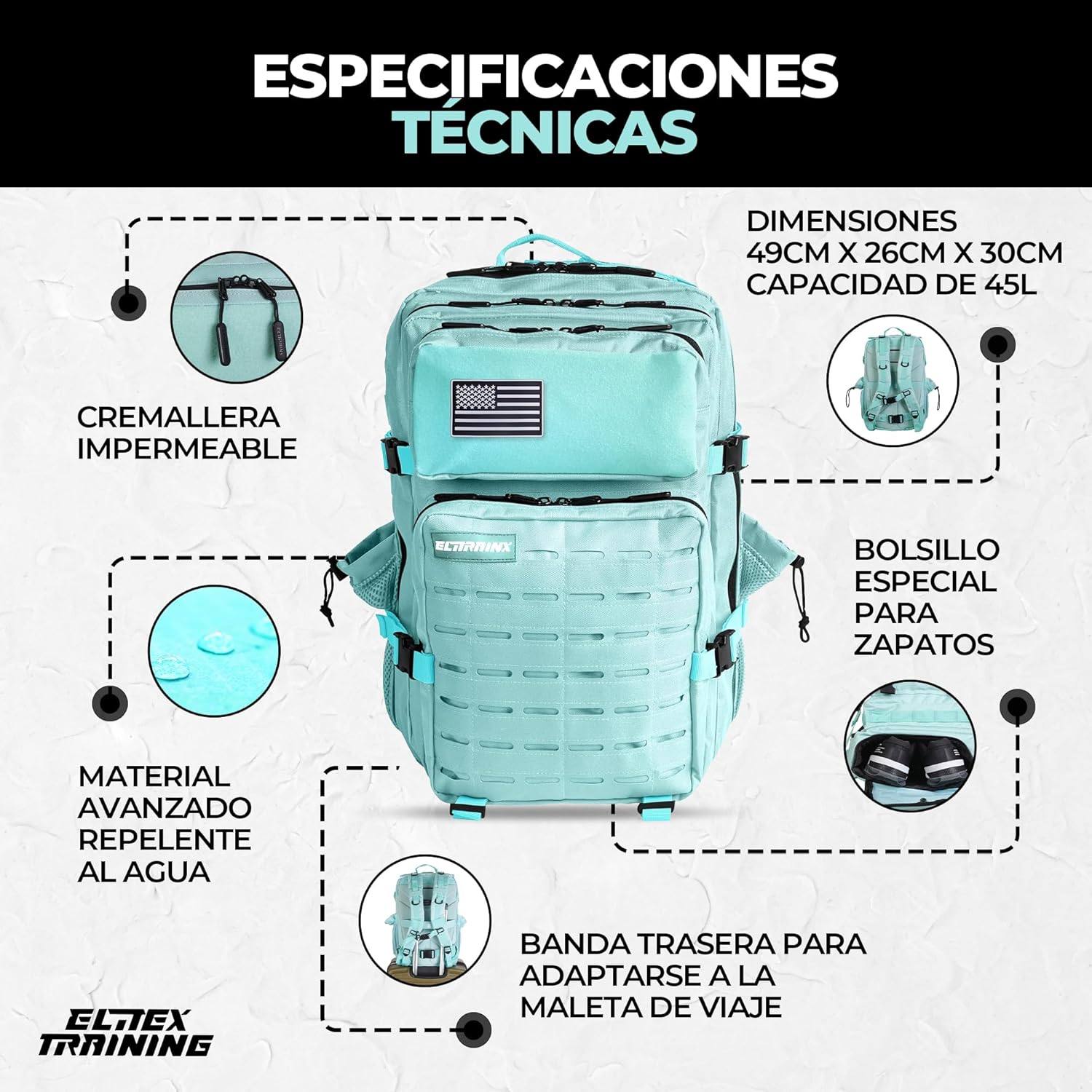 ¿Cansada de las mochilas de gimnasio que no aguantan tu ritmo? ¿Te falta espacio para la calleras, el cinturón, las zapatillas y el shaker? La Mochila Táctica ElitrainX 45 litros es ideal CrossFit & Gym no es una mochila cualquiera; es tu compañera de batalla, diseñada para la atleta que lo exige todo.