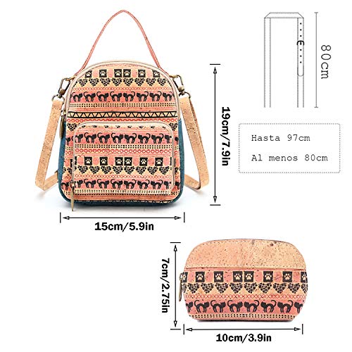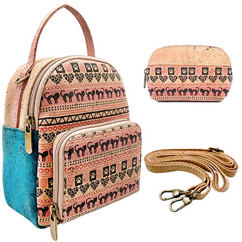 MEN KAI Mini Mochila Urbana Original para Mujer de Corcho de Portugal y Estuche de Gafas + Mini Bolso + Bolso Crossbody Conjunto De 2 Piezas para Moda Casual