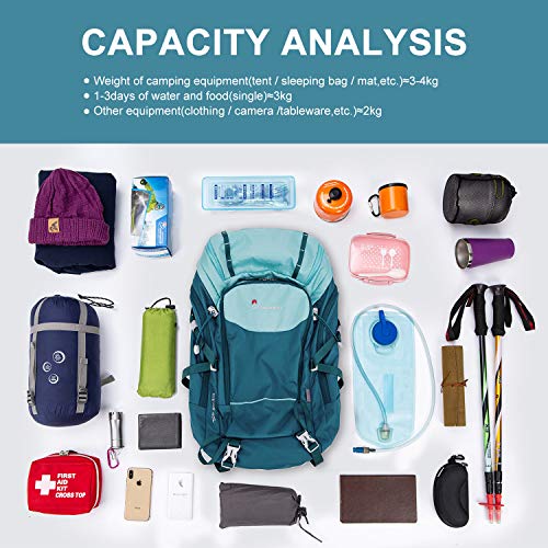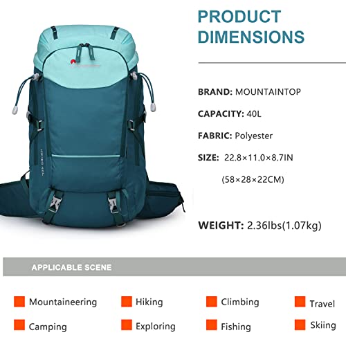MOUNTAINTOP Mochila de Senderismo 40 litros para Montañismo, Acampada, Viajes, Deportes al Aire Libre (Agua Azul)