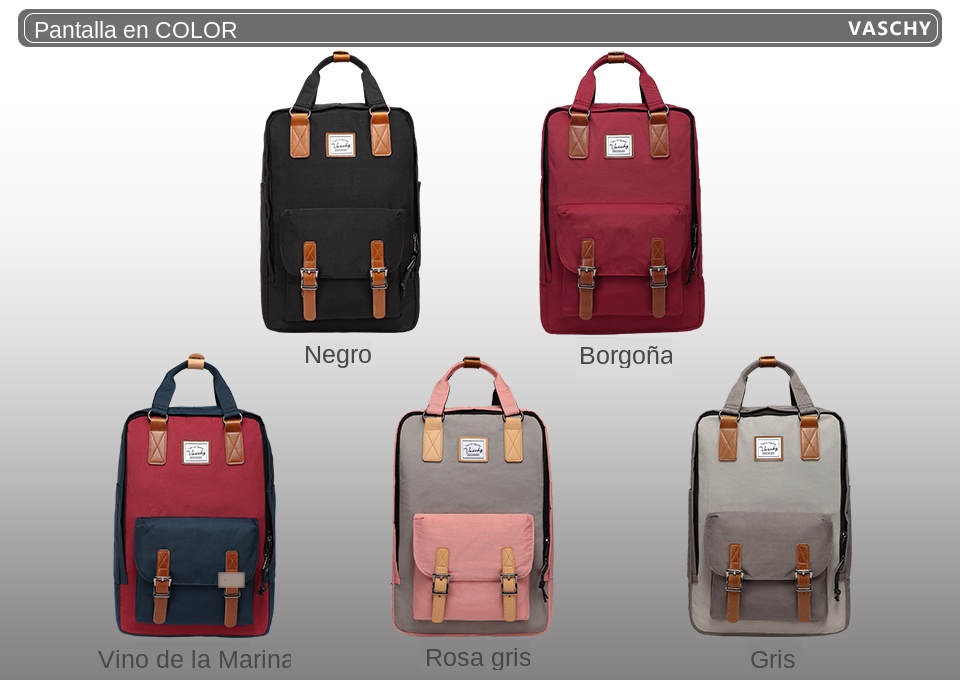 - ★ Diseño VINTAGE: La mochila casual diaria Vaschy está hecha de tela de Vinilo Suave resistente al agua de alta calidad. el diseño vintage presenta una forma rectangular y aerodinámica con dos asas superiores para llevar a mano y correas ajustables para mochila que lo hacen fácil y cómodo de llevar. hay dos bolsillos para botellas de agua en ambos lados para mantener la botella de agua y el paraguas.